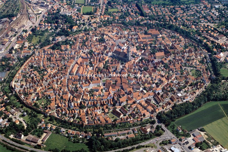 Die historische Altstadt von Nördlingen im Sommer