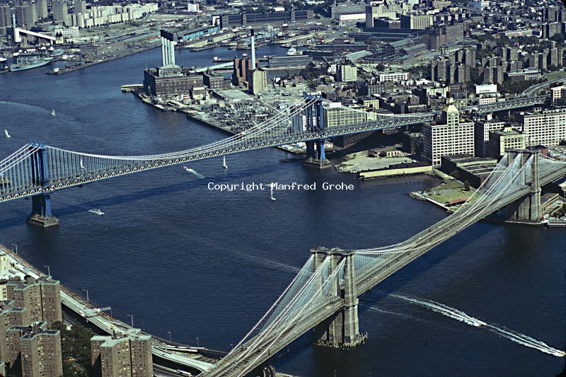 Brooklyn-Brücke (unten) und Manhattan-Brücke in New York