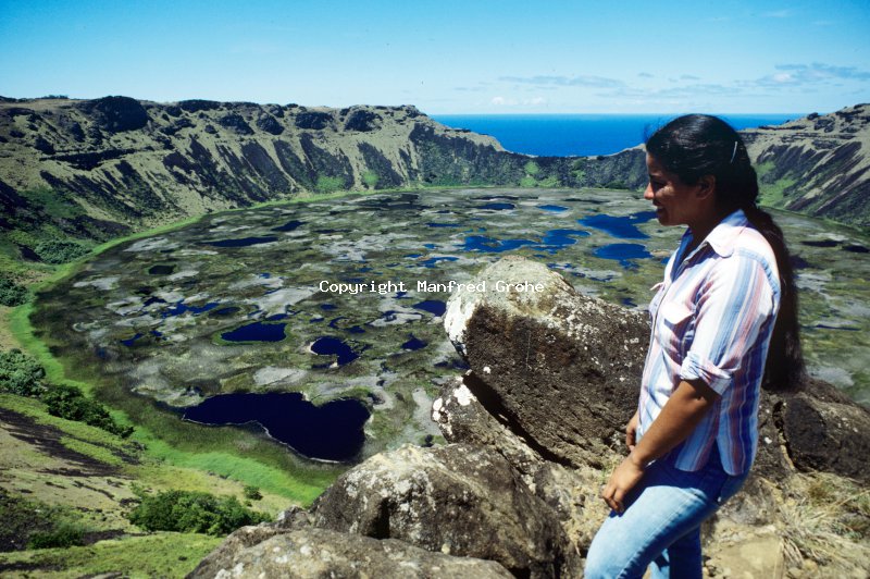 Der Kratersee des erloschenen Vulkans Rano Raraku auf der Osterinsel