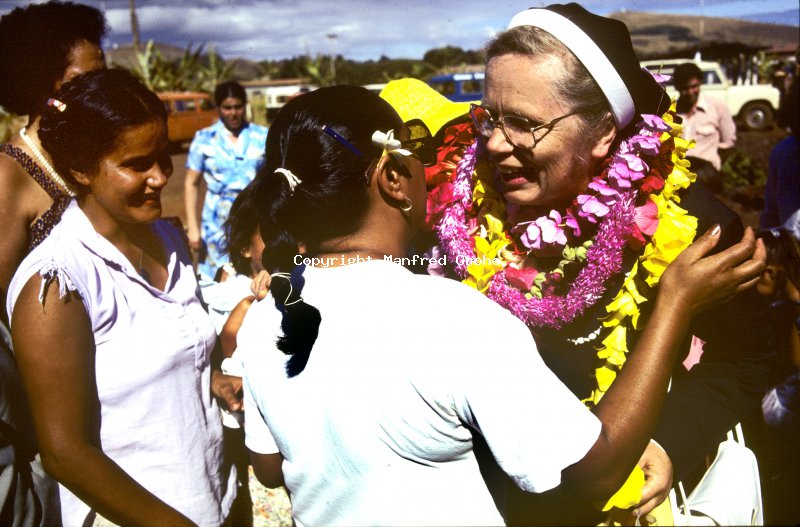 Am Flughafen werden die Besucher der Osterinsel traditionell mit Blumen begrüßt