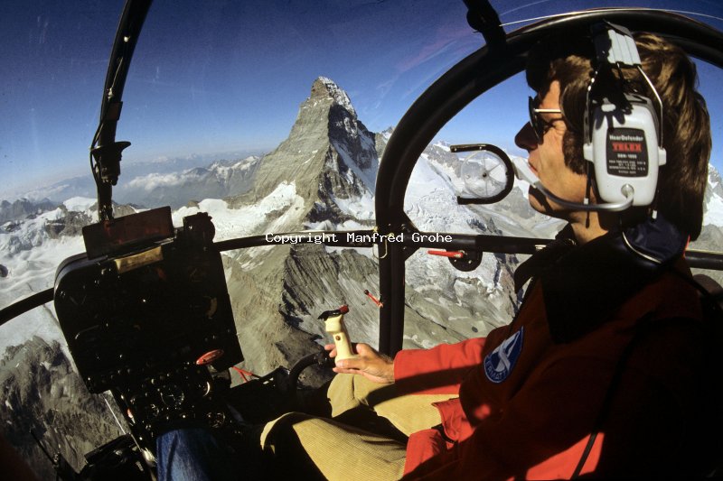 Ein Helikopter der AIR ZERMATT auf dem Flug zum Matterhorn